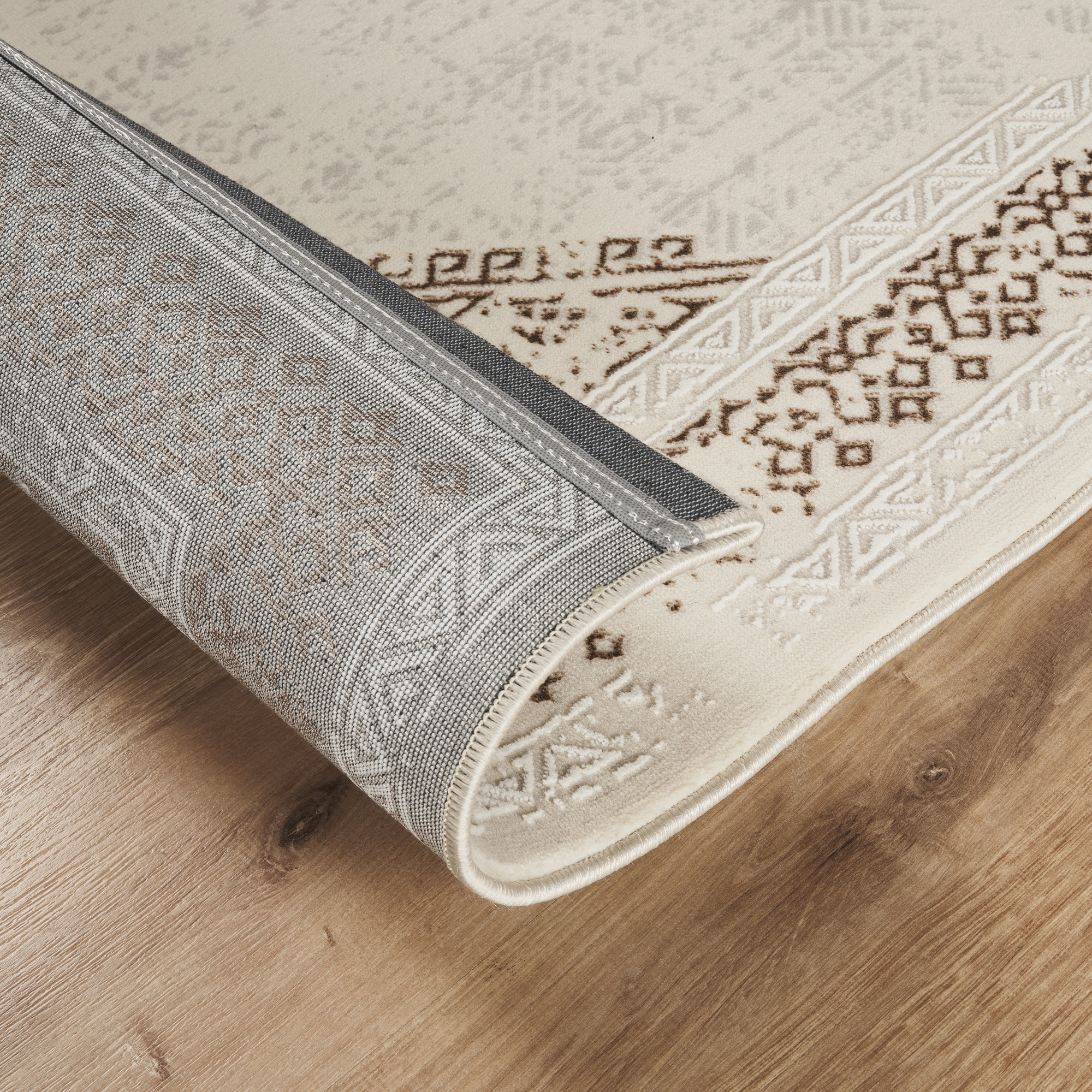 • Nach der Fertigung des Teppichs erfolgt eine erneute Schur der Oberfläche. Trotz gründlicher Reinigung können vereinzelt lose Fäden im Teppich verbleiben, die verborgen sind. Es empfiehlt sich, diese Fäden in Richtung des Teppichflors einfach mit einem Staubsauger zu entfernen.